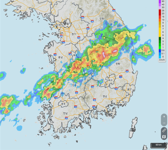 보통 열대 지방에서 시작되는 '대기의 강'은 육지를 만나면서 많은 비로 떨어지는데, 우리나라에선 여름철 북태평양 고기압의 북쪽 가장자리를 따라 발달합니다.