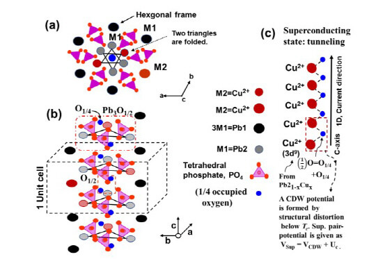 첫째는 납, 구리, 인이 산소와 결합한 아파타이트(Apatite·육각기둥 모양으로 원자 배열이 반복된 형태) 구조의 납 자리에 구리가 들어가 절연체·금속 전이(insulator-metal transition)가 일어나면서 부피가 수축된다는 것.